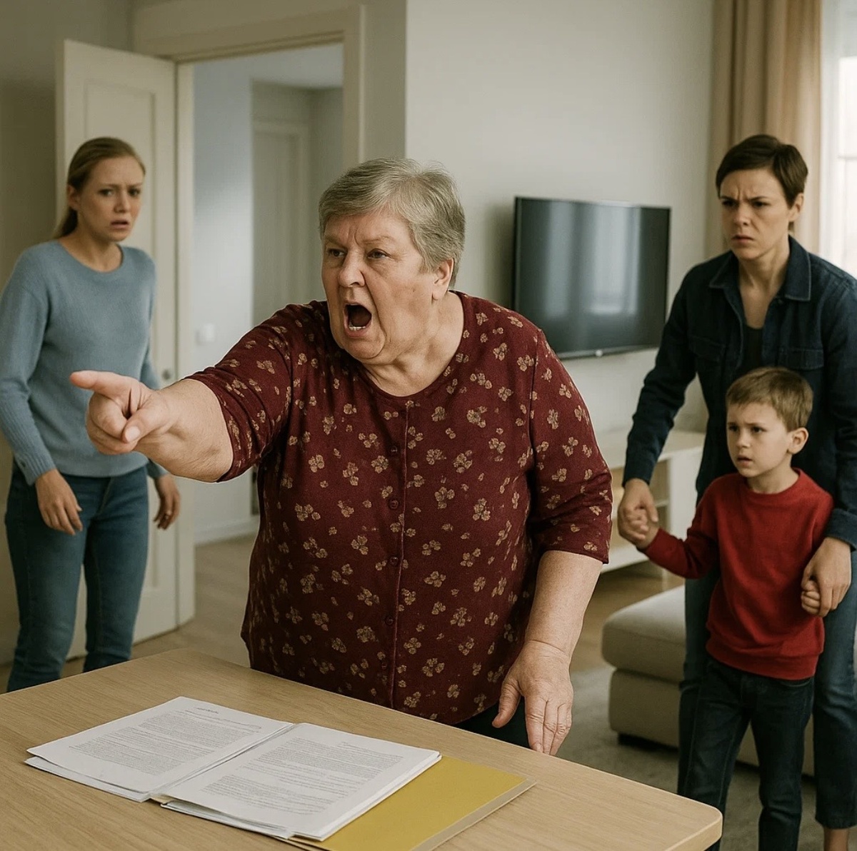 — Ах ты, нахалка такая! Думала, что тебе всё с рук сойдёт? Квартира моего сыночка, я специально дарственную оформила! — рявкнула свекровь, швыряя бумаги на стол.