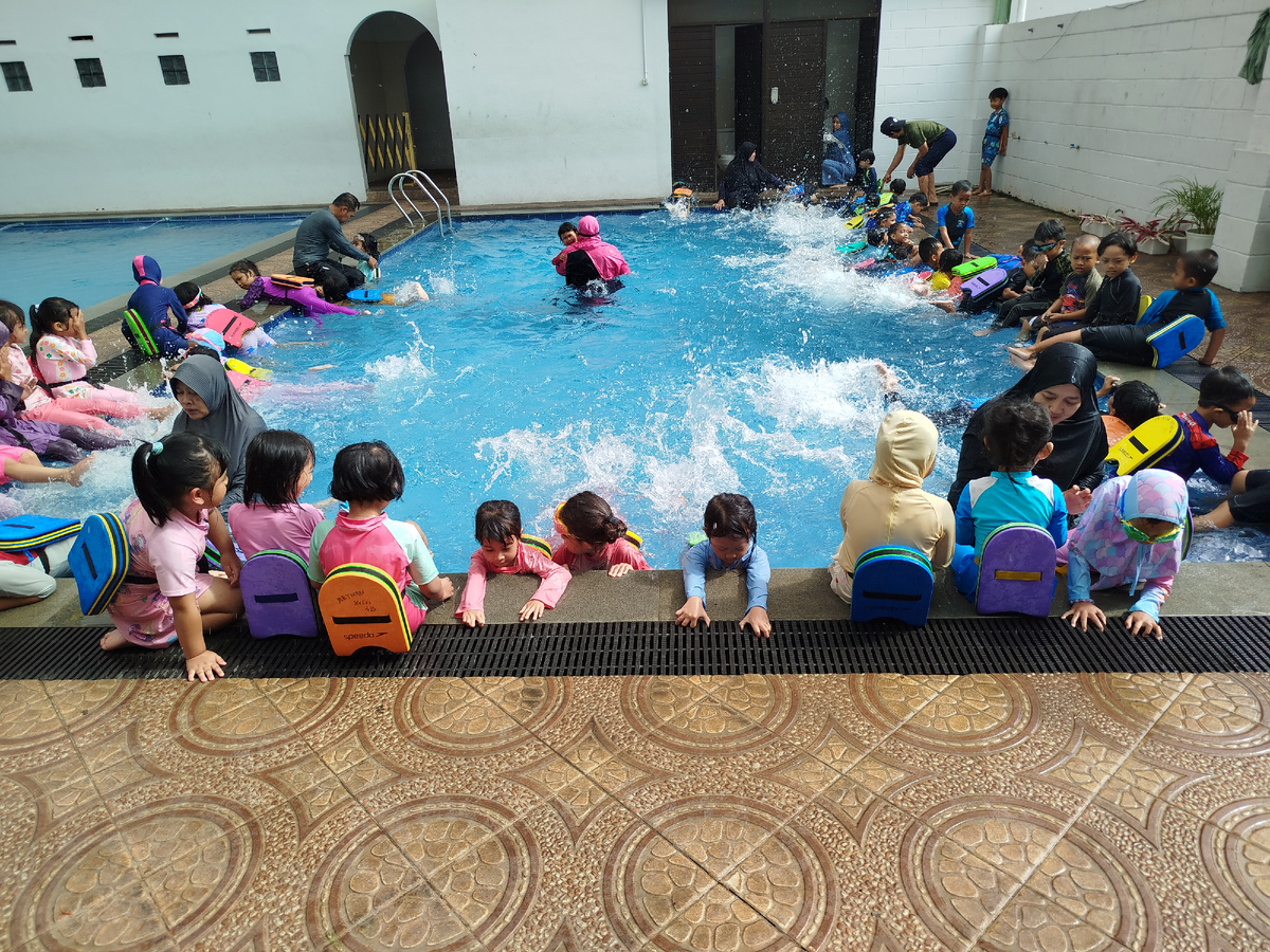 Во вторник у Амиры по расписанию было плавание. Проходит оно в бассейне начальной школы Аси Путра. Раньше рядом была ещё одна школа-сад этой организации, но теперь она располагается в другом месте, да и плавают они по понедельникам. Народу было немного - из 75-ти детей из четырёх классов доехало, наверное, человек пятьдесят. Как всегда, начинали с разминки - побегали , попрыгали, покачались из стороны в сторону, поболтали ножками в воде. Некоторые дети уже сами плавают - те, кто занимается дополнительно с прошлого года. Но большинство пока только с дощечками. Бассейн хорош тем, что сверху есть крыша - можно плавать даже в дождь. Но в этот раз и дождя не было. Плавают дети с 8:00 до 10:00 утра. Многие родители ждут их, я тоже - фоткаю и снимаю видео. Амира ездила в бассейн в новом шлеме Так как надо ехать по центральной улице, а поворот к школе находится напротив полицейского управления, это решение вполне оправдано. Когда мы вернулись из бассейна, приехал мой заказ - 6 штук канвы 30×4