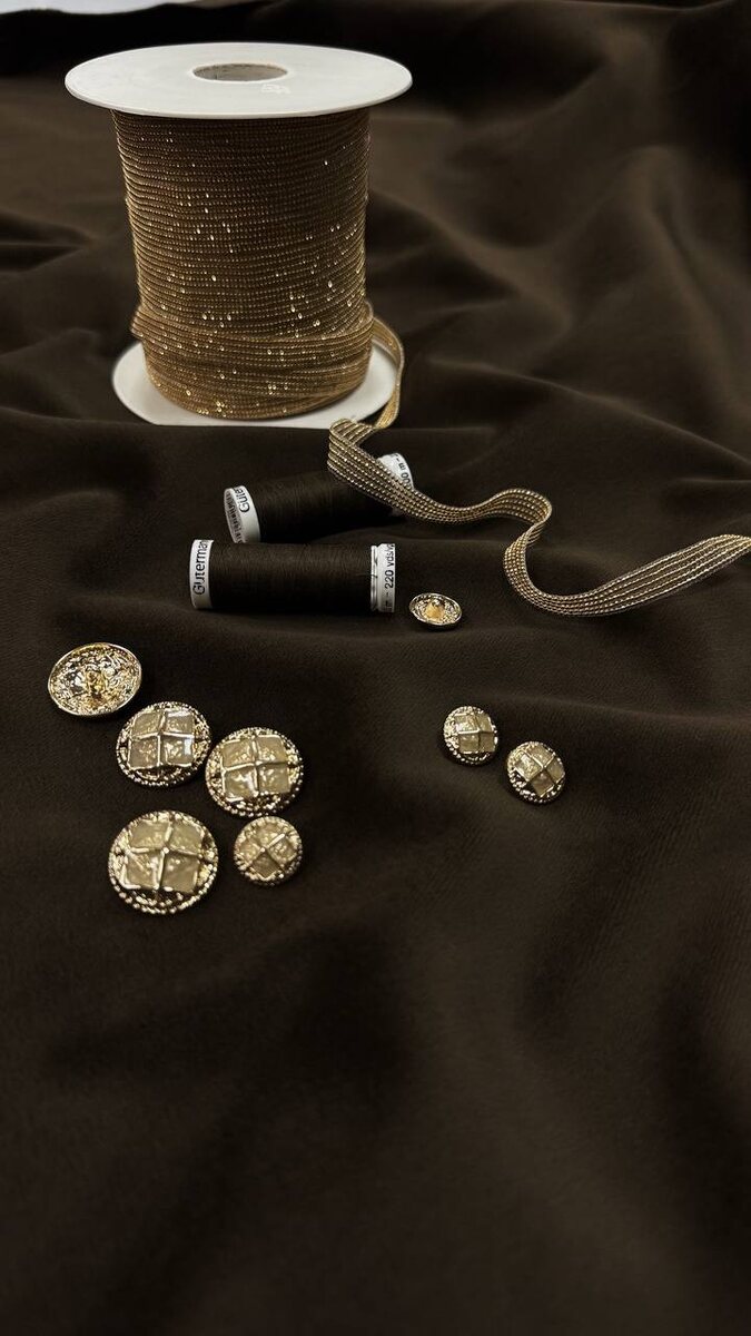 Хлопковый бархат в коричневом оттенке Производство Италия. Прекрасно подойдет для пошива пиджака, костюма, юбки Мягкий, не сухой Ширина 1м 13 см Стоимость 2890₽ Мониль золото B.Cucinelli ш:11мм 2900р Пуговицы металл компаньоны От 165₽ до 260₽ Пуговицы натуральный рог 388₽ На первый заказ мы дарим Вам скидку 10% Для заказа пишите пожалуйста нам в телеграмм с волшебной фразой «Пришла из Дзен» Ссылка на наш телеграмм канал: Ждём Вас ежедневно, с 10:00 до 20:00, по адресу: г.Москва, ул Мневники, д. 6, п.6