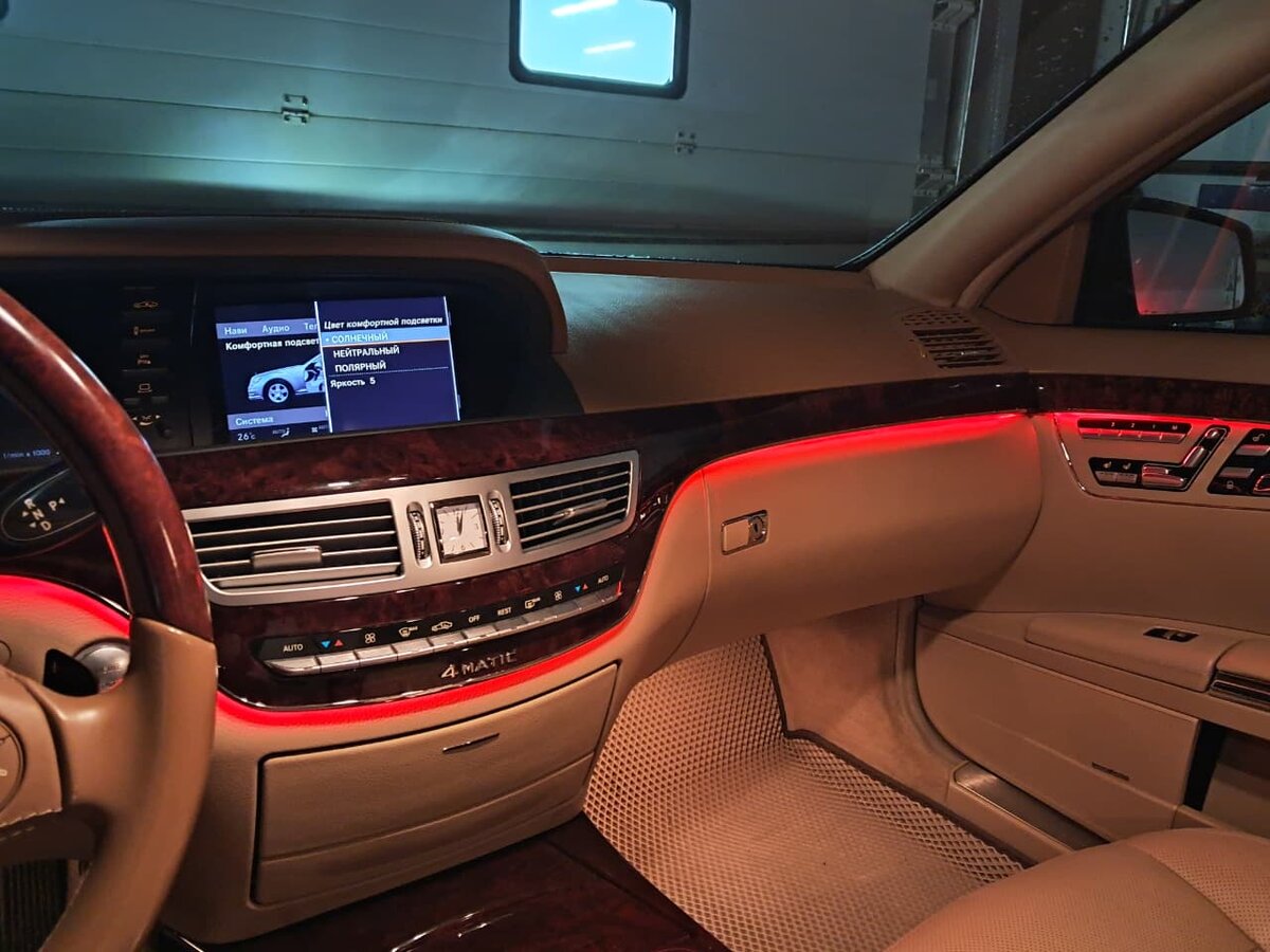 Заменили заводскую подсветку Mercedes S-class w221 на свою, собственного производства.