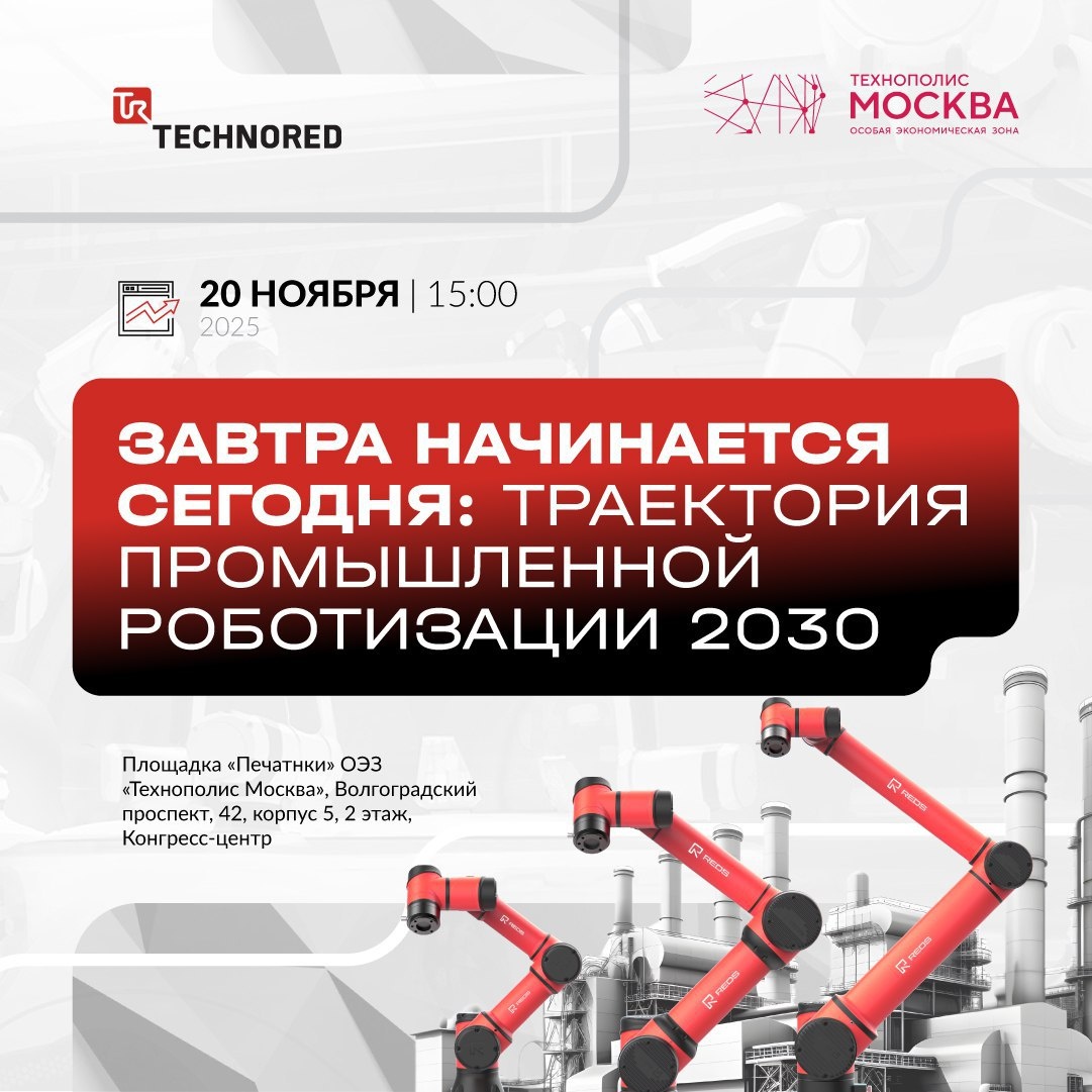ПОДРОБНОСТИ И РЕГИСТРАЦИЯ: https://technomoscow.ru/event/zavtra-nachinaetsya-segodnya-traektoriya-promyshlennoy-robotizatsii-2030/