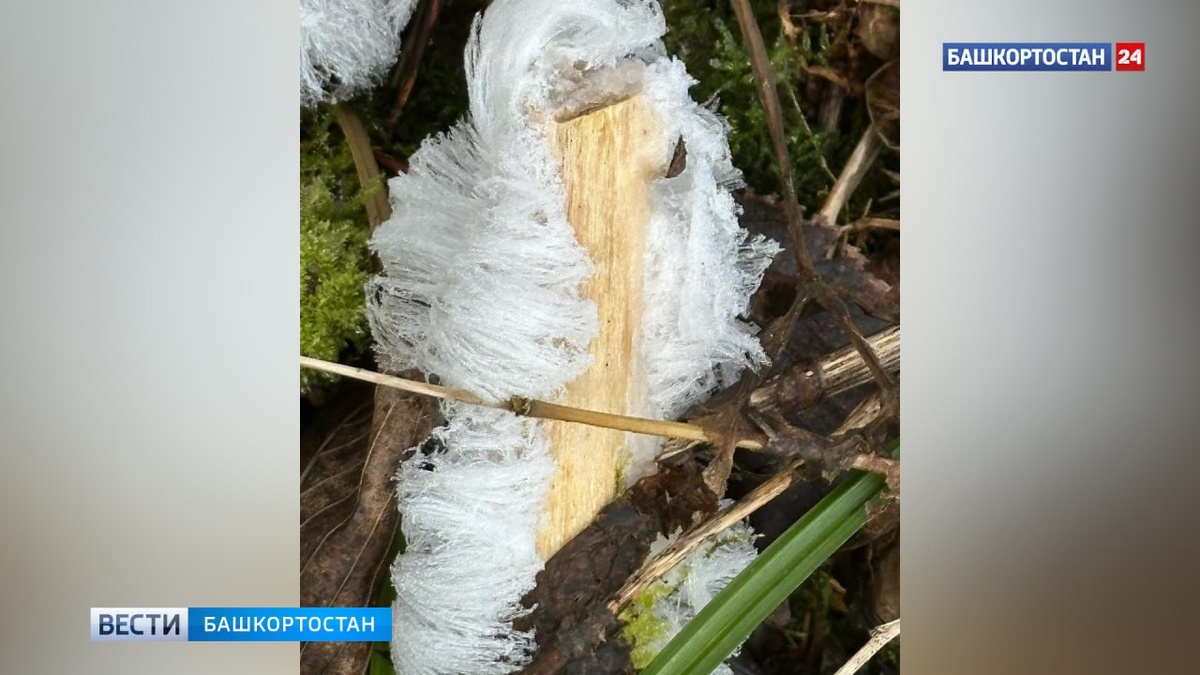 В башкирской Аскинской пещере было зафиксировано удивительное природное явление — так называемый «волосатый лед». Это редкое образование, напоминающее тонкие ледяные волокна или хрустальную бороду, появляется в лесах региона при соблюдении особых погодных условий, - сообщает "Вести Башкортостан". Как поясняют местные гиды, для его формирования необходима гниющая древесина, температура чуть ниже нуля и высокая влажность. Однако главным «виновником» этого чуда является грибок Exidiopsis effusa. Проникая в древесину, он вызывает процесс, в результате которого влага выталкивается наружу и на морозе мгновенно кристаллизуется, превращаясь в изящные ледяные нити. Само наличие этого феномена служит индикатором уникальной и здоровой экосистемы Аскынского региона.