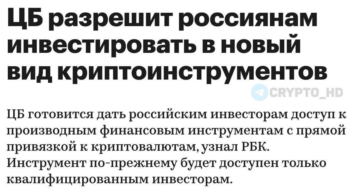 🇷🇺 ЦБ РФ расширяет доступ к криптоинструментам для «квалов». Центробанк готов открыть российским квалифицированным инвесторам доступ к новым инструментам с прямой привязкой к криптовалюте. Раньше инвестировать через российскую инфраструктуру можно было только через фонды или индексы, связанные с криптой. ЦБ рассчитывает, что в 2026 году будет принято полноценное законодательство, регулирующее инвестиции и оборот криптоактивов в России. Ранее: - Эльвира Нибиуллина - статус стейблкоинов - криптообменники в РФ - законодательство - BTC в обзоре ЦБ РФ - доступ для неквалов Crypto Headlines