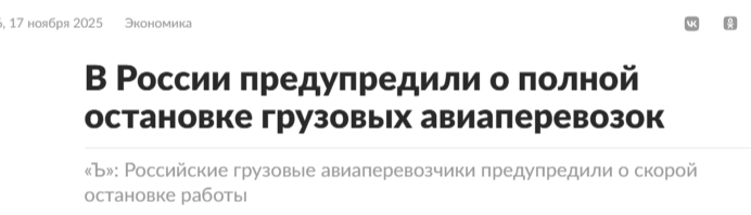 Грузовые авиаперевозки в России полностью как отрасль (!) прекратят свое существование в течение 3-5 лет в нынешних условиях - об этом заявляли сами представители отрасли, обсуждая проблемные вопросы на круглом столе в Общественной палате России.