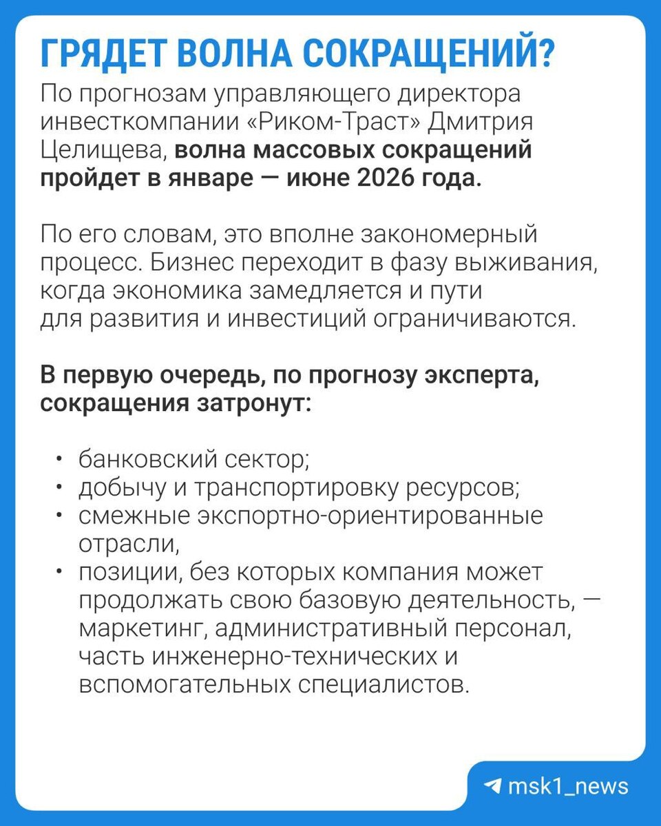 Эксперты ожидают в первом полугодии массовую волну сокращений. В каких секторах — читайте в карточках ⬆️