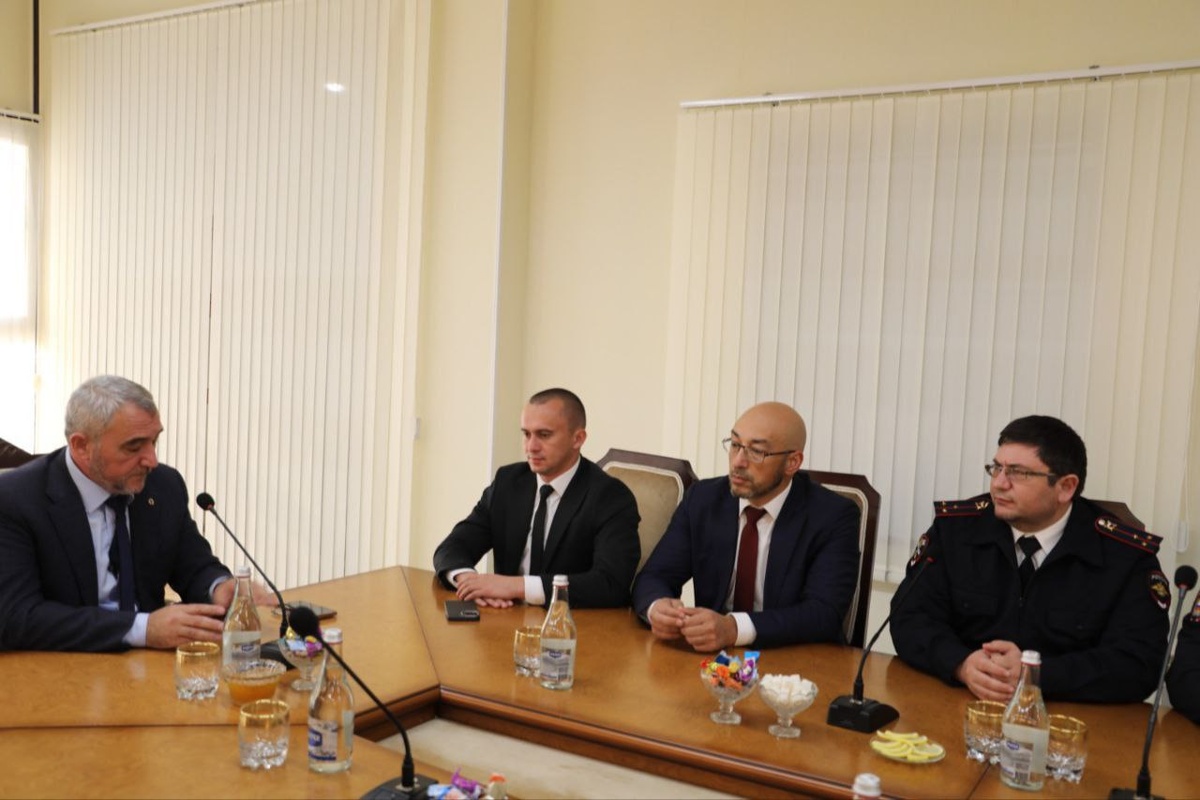 В администрации Магаса наградили лучших участковых столицы республики Сегодня, в день участковых уполномоченных полиции, и.о. Главы города Магаса Муса Темурзиев встретился с участковыми столицы Ингушетии, а также с инспектором по делам несовершеннолетних, чтобы поздравить их с профессиональным праздником. Руководитель столицы республики вручил отличившимся сотрудникам полиции почётные грамоты и выразил слова благодарности за их нелегкий, но важный для общества труд. Начальник Отд МВД России по г. Магас капитан полиции Рашид Чаниев поблагодарил градоначальника за благожелательное внимание к деятельности полиции и подчеркнул, что органы внутренних дел в эффективном взаимодействии с администрацией столицы республики продолжат работу по обеспечению правопорядка и безопасности в Магасе.