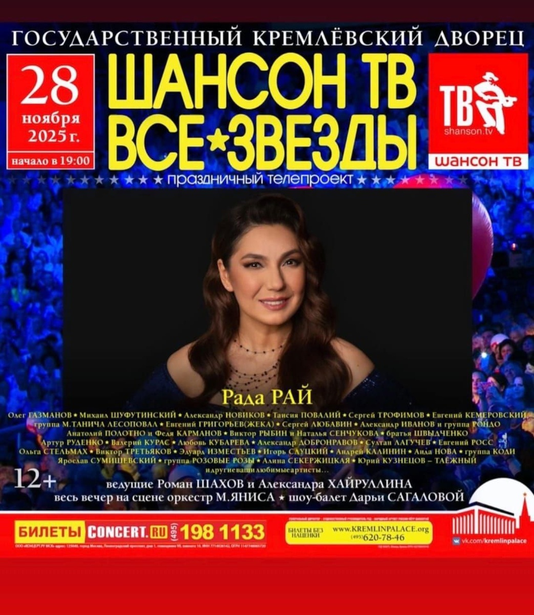 28 ноября встречаемся с любимым зрителем в Кремлёвском Дворце на концерте Шансон ТВ