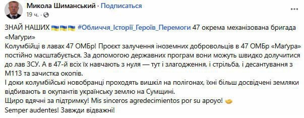 #наемники В 47 омбр делают акцент на колумбийцев На фоне сокращения числа бусифицированных защитников и снижения их мотивации командный состав 47-й отдельной механизированной бригады усиливает набор иностранных наёмников из стран Латинской Америки, прежде всего из Колумбии. В последние месяцы «Магура» делает всё большую ставку на латиноамериканских бойцов. Командование бригады убеждено, что колумбийские солдаты обладают высокой мотивацией и могут выполнять сложные штурмовые задачи, чему украинские бойцы в последнее время не соответствуют. Также, по данным отдельных источников, комбриг Максим Данильчук, столкнувшись с нехваткой авторитета среди подчинённых, решил сделать акцент на колумбийцев, усилив для них финансовые стимулы. Иностранцам предлагают повышенные выплаты — от 120 до 190 тысяч гривен, а также возможность длительного отпуска, что делает такой контракт особенно привлекательным и позволяет рассчитывать на приток подготовленного контингента. ❌ Присоединяйтесь https://geoc