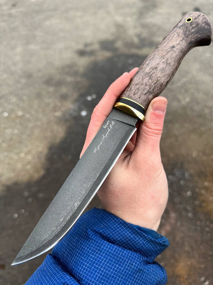 🔥 Готов к продаже: нож «Засапожный» из тигельного булата! Преимущества: - *Тигельный булат* — сталь, которая долго держит заточку и обеспечивает агрессивный рез. - Полные спуски от обуха — для идеального реза без сопротивления. - Рукоять из оранжевого капа клена — удобно лежит в руке и выглядит эффектно. - Безопасная гарда для комфортной работы. - Твердость клинка: 64-65 HRC — *режет как бритва*. - В комплекте — ножны из натуральной кожи. Можем сделать формованные ножны (+8 000 ₽). Отлично подойдет: - Охотникам, рыбакам, туристам, коллекционерам и просто ценителям настоящих вещей. Цена: ~17 330 ₽~ 9 500 ₽ по акции! Арт: 2079-1 📩 Заказать можно прямо сейчас: • Telegram: [@Nazarklinokbot](https://t.me/Nazarklinokbot) • WhatsApp/Viber: +79101343831 #кузницаНазарова #ножизбулата #ручнаяработа #засапожный #купитьнож #подарокмужчине #охотничийнож #коллекционныйнож