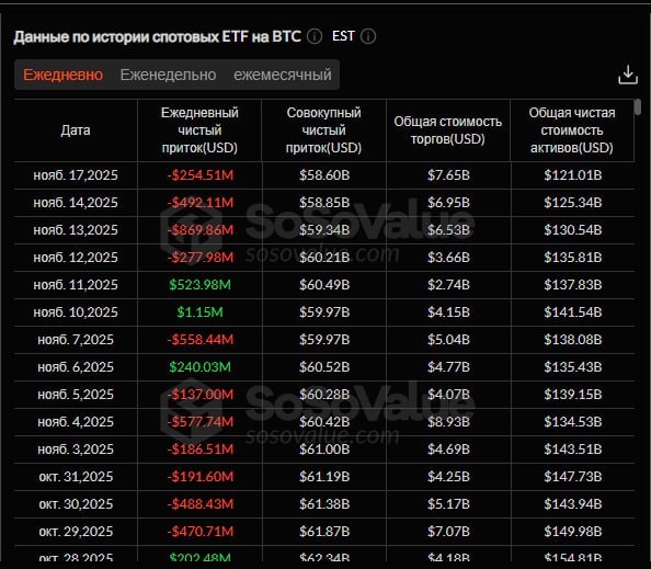 πΈ 17 Π½ΠΎΡΠ±ΡΡ ΡΠΏΠΎΡΠΎΠ²ΡΠ΅ Π±ΠΈΡΠΊΠΎΠΈΠ½-ETF Π·Π°ΡΠΈΠΊΡΠΈΡΠΎΠ²Π°Π»ΠΈ ΡΠΈΡΡΡΠΉ ΠΎΡΡΠΎΠΊ Π² ΡΠ°Π·ΠΌΠ΅ΡΠ΅ $254,51 ΠΌΠ»Π½. Π‘ΠΏΠΎΡΠΎΠ²ΡΠ΅ ETF Π½Π° Ethereum Π·Π°ΡΠΈΠΊΡΠΈΡΠΎΠ²Π°Π»ΠΈ ΡΠΈΡΡΡΠΉ ΠΎΡΡΠΎΠΊ Π² ΡΠ°Π·ΠΌΠ΅ΡΠ΅ $182,8 ΠΌΠ»Π½. Π‘ΠΏΠΎΡΠΎΠ²ΡΠ΅ ETF Π½Π° Solana ΠΏΠΎΠΊΠ°Π·Π°Π»ΠΈ ΡΠΈΡΡΡΠΉ ΠΏΡΠΈΡΠΎΠΊ Π² $8,26 ΠΌΠ»Π½. ETF Π½Π° XRP ΠΏΠΎΠ»ΡΡΠΈΠ»ΠΈ ΡΠΈΡΡΡΠΉ ΠΏΡΠΈΡΠΎΠΊ Π² ΡΠ°Π·ΠΌΠ΅ΡΠ΅ $25,41 ΠΌΠ»Π½.