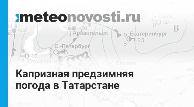 В Татарстане на этой неделе погода будет резко меняться. Во вторник, 18 ноября, республику пересечет теплый атмосферный фронт. Пройдут осадки в виде снега и мокрого снега, днем переходящие в дождь. Местами ожидаются гололедные явления: на дорогах гололедица, местами сильная, возможен гололед. После небольшого ночного мороза температура воздуха днем повысится до +4..+9. Ветер сильный, с порывами 15-20 м/с. В середине недели будет тепло, местами возможен дождь. Температура воздуха ночью 0..+5, днем +3..+8. Сохранится сильный порывистый ветер до 17-22 м/с. В четверг, 20 ноября без существенных осадков. Ночью подморозит до -5, днем около нуля. В пятницу местами небольшой дождь, температура воздуха в течение суток от -2 до +2 градусов. В субботу в приближением очередного циклона небольшие дожди, потеплеет до +3..+8 градусов. Перейти на сайт Прогноз погоды на 14 дней