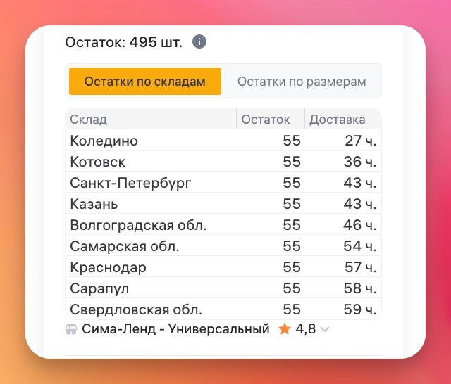 ВБ снизил отображение предельного остатка на складе/размере до 55 шт