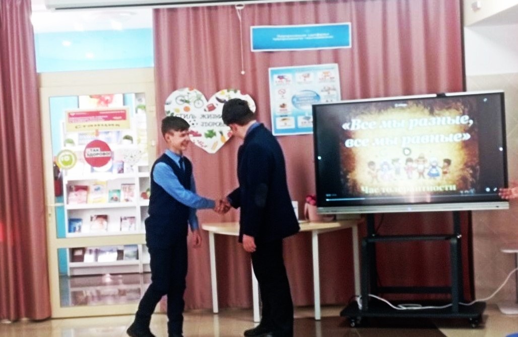 17 ноября 2025 года в Баргузинской МЦБ состоялся урок толерантности «Доброта что греет сердце», посвященный отмечаемому 16 ноября Международному Дню толерантности. Толерантность – это уважение, понимание, терпение, дружба. Понятия, которые необходимы в любое время и важны при общении со всеми людьми. Участниками урока стали учащиеся 9 класса. Мероприятие началось с просмотра видеофильма. Затем старшеклассники приняли активное участие в играх, конкурсах «Приветствие», «Шкатулка откровений», «Мысли без слов», «А я считаю» в ходе которых представили свою точку зрения по данной теме. Мероприятие проведено совместно с советником директора по воспитательной работе Баргузинской СОШ Моисеенко Л.В.