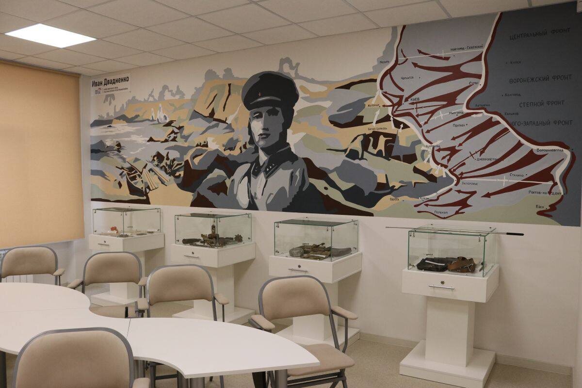 В Кисловодске открыли школьный музей Боевой Славы Торжественное мероприятие состоялось в школе №9 города-курорта. Участниками церемонии стали представители «Единой России» и казаки. Основную часть экспозиции музея составляют находки периода ВОВ. В центре внимания – мурал, посвящённый Герою Советского Союза, выпускнику школы Ивану Карповичу Двадненко. Создан в рамках партпроекта «Новая школа». «Почему мы выбрали именно этого героя? Мы хотели показать ребятам, что герои живут среди нас. Они учатся также наравне с детьми, живут рядом. Эскиз мурала нарисовал Никита Гофман – сын нашего учителя-руководителя нашего школьного музея Юлии Гофман. Мурал наносила команда художников», – рассказала директор СОШ 9 г. Кисловодска Анастасия Уварова. Музей обрёл полноценное помещение после капитального ремонта. Обновлённая школа открыла свои двери буквально неделю назад. Это старейшее образовательное учреждение Кисловодска стало первым объектом масштабной программы модернизации школ Кисловодска. «
