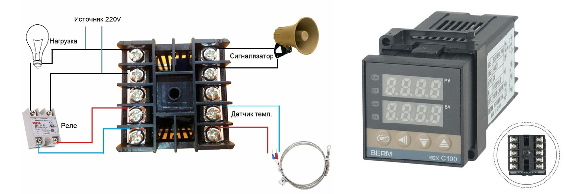3. REX-C100 0-999°C (SSR-выход + комплект) – Готовое решение для высокой мощности
