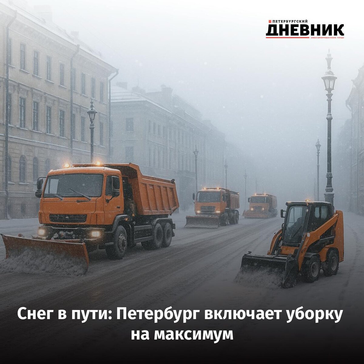 🚜 В Петербурге 18 ноября для борьбы со снегопадом вышло 725 машин Во вторник, 18 ноября, синоптики предупреждают о приближении осадков. С учетом прогноза сотрудники Комитета по благоустройству Петербурга призывают водителей, не сменивших летний комплект шин на зимние, воздержаться от поездок. Глава комитета Сергей Петриченко рассказал, что сегодня на уборку улиц и тротуаров города вышло 725 единиц техники, 1043 дворника, в достаточном количестве имеются противогололедные материалы. Фото: DALL-E Подписаться на Петербургский дневник в MAX