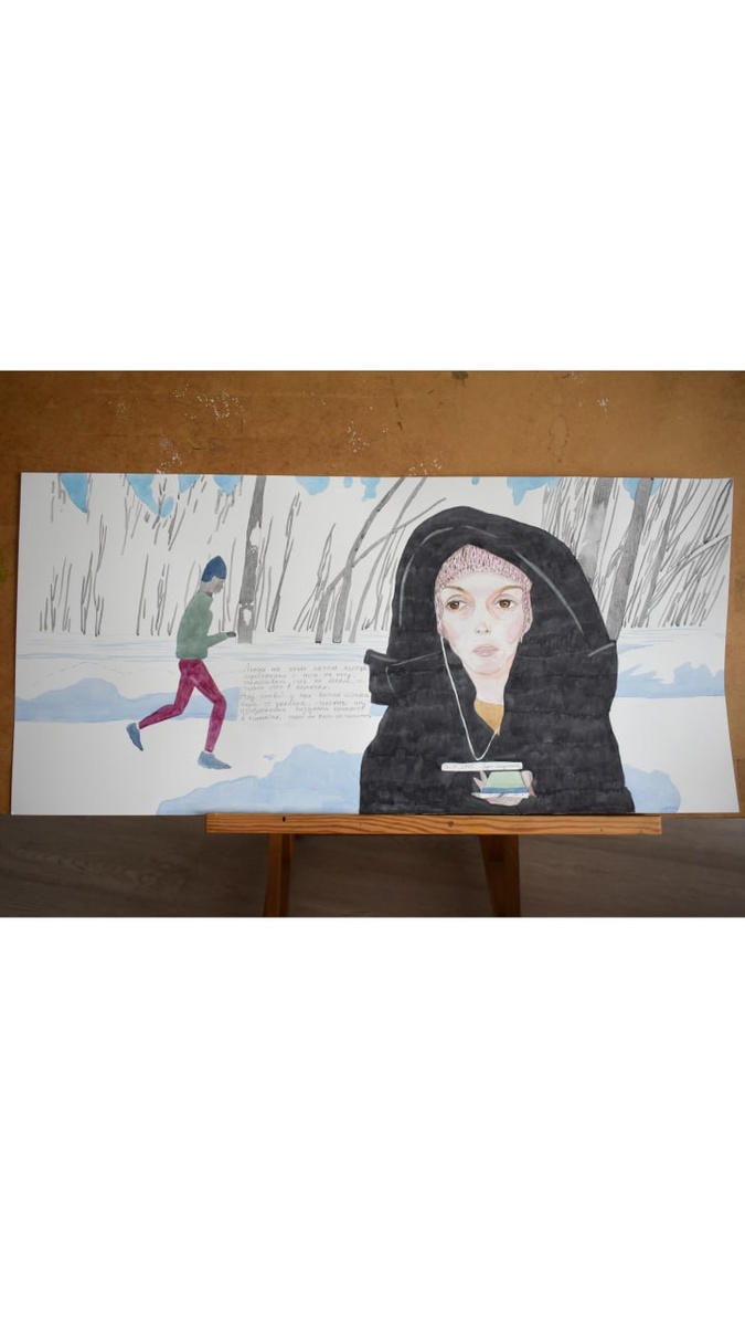 Только их было не прочитать 11.2025 Акварель на бумаге 80 * 37 см Хорошо быть художником Какие задачи решает автопортрет? Неочевидные Но здорово позволить себе быть простым и понятным