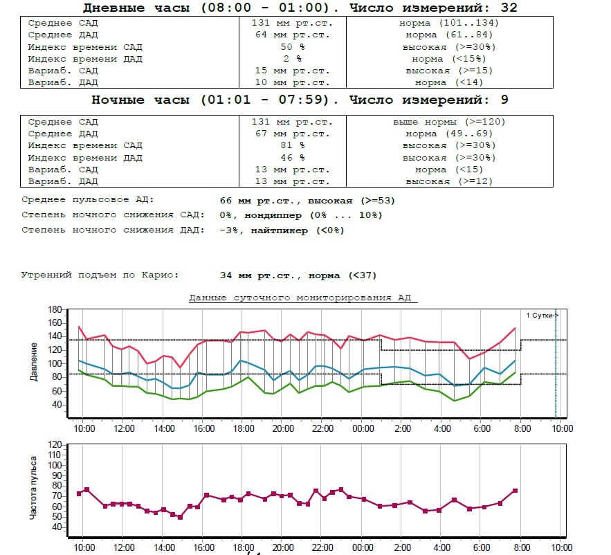 Клинразбор: Пациент на терапии. Лечим или калечим? 💊 #Клинразбор #СМАД #NonDipper #КонтрольТерапии Коллеги, здравствуйте! 👋 Хочу поприветствовать более 100 новых подписчиков, которые присоединились к нам вчера, в том числе из солнечного Узбекистана! 🇺🇿 Добро пожаловать в «СМАД Эксперт»! Сегодня мы разберем случай, который идеально демонстрирует, почему СМАД — это «золотой стандарт» для оценки эффективности терапии и выявления скрытых рисков. Клинический случай: «Идеальный» пациент? Пациент К., 58 лет. ✔️Диагноз: Артериальная гипертензия. ✔️Терапия: Принимает Индапамид 1.5 мг + Периндоприл 5 мг. Строго каждое утро. ✔️Офисное АД на приеме: 135/85 мм рт. ст. (Целевое АД почти достигнуто!) ✔️Жалобы: «Доктор, в целом все неплохо, но я плохо сплю и просыпаюсь уже уставшим». Клиницист, видя офисное АД, мог бы просто отпустить пациента. Но, учитывая жалобы, было решено провести СМАД. Данные СМАД: 🔹Среднее САД (День): 131 мм рт. ст. (Отлично! Терапия днем работает, в пределах норм