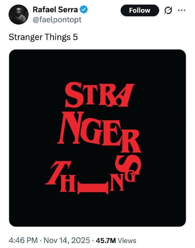 Дизайнеры выкатили официальное лого 5 сезона “Очень странных дел” — красиво, стильно, всё как надо. Но внимательные зрители уже заметили один интересный нюанс. Подробнее: https://hard-tm.su/threads/128230/ 🕹HARD-TM — Подписаться