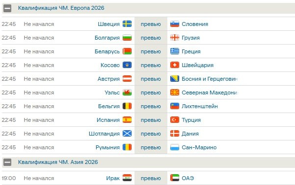 Матчи на сегодня