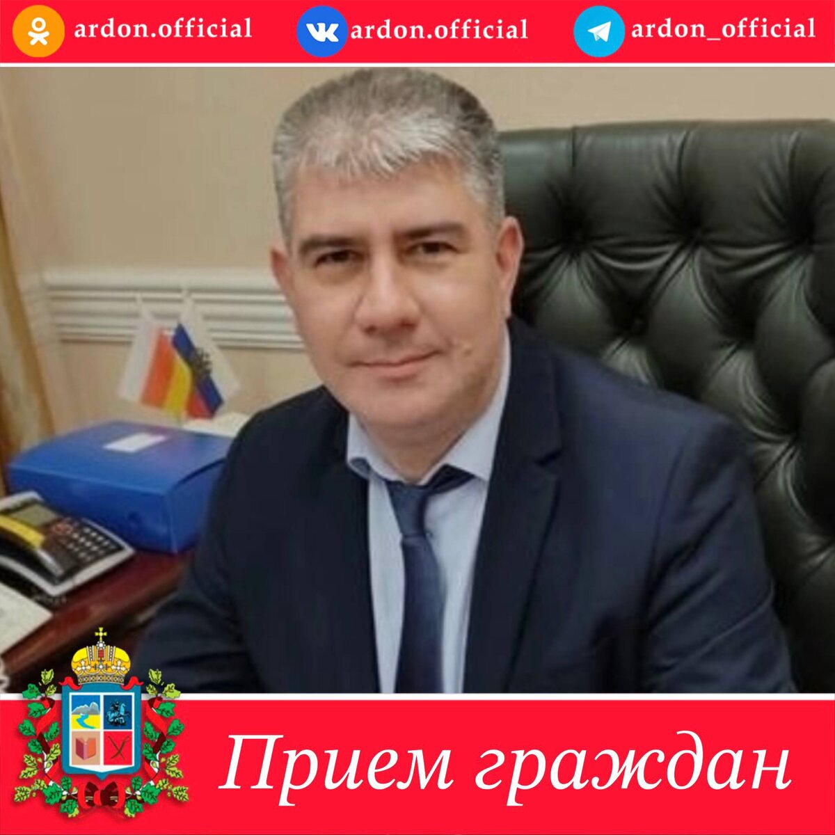 Уважаемые жители Ардонского района! Председатель Комитета по охране и использованию объектов культурного наследия РСО-Алания Галуев Ацамаз Дмитриевич проведет личный прием граждан в АМС Ардонского района. Дата приема: 19 ноября Время: 10:00 Адрес: ул.Советов, 6. Запись по телефону: 8 (86732) 3-01-78 внутренний 237 ✍️✍️✍️✍️✍️✍️✍️✍️✍️✍️