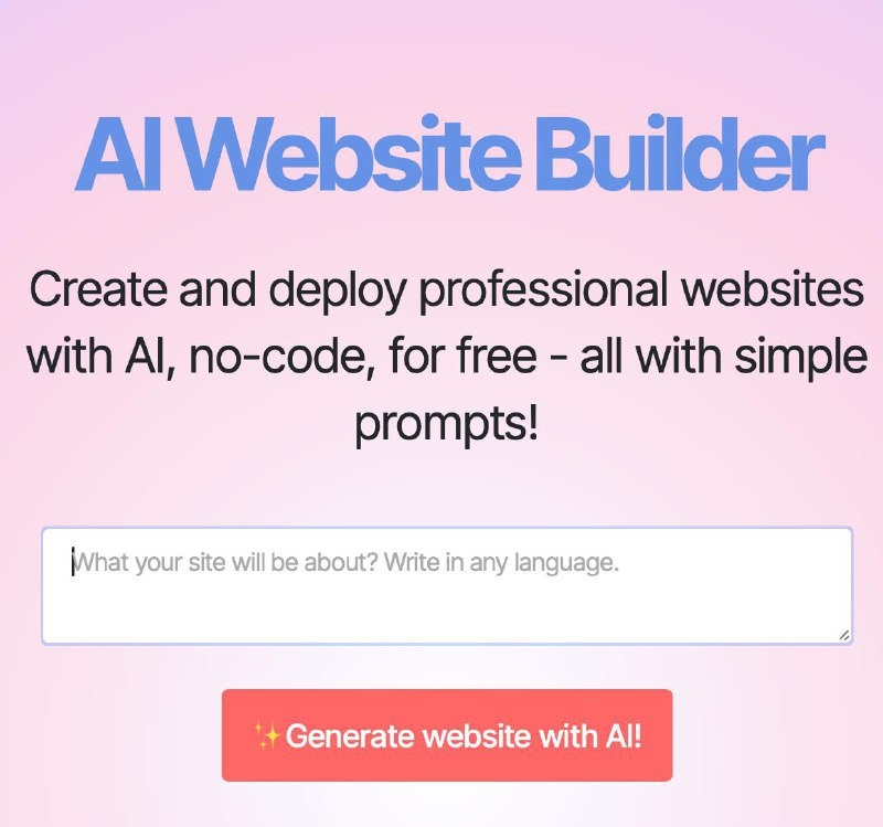 Создаём сайты вообще без строчки кода — нейросетка теперь сама собирает проект под ваши запросы по промптам. Что она умеет делать: 🔴 Генерирует весь контент целиком по вашему описанию — от структуры до текста. 🔴 Интерфейс максимально дружелюбный — разберётся даже человек, который в жизни не открывал редактор кода. 🔴 Можно скачать полный готовый проект и залить сайт куда угодно. 🔴 Автоматически подстраивает дизайн под мобильные устройства. 🔴 Работает прямо в браузере — не нужно ничего качать или устанавливать. Будущее веб-девелопмента подошло вплотную. И главное — сервис бесплатный. Пробуем... Подробнее: https://hard-tm.su/threads/128239/ 🕹HARD-TM — Подписаться