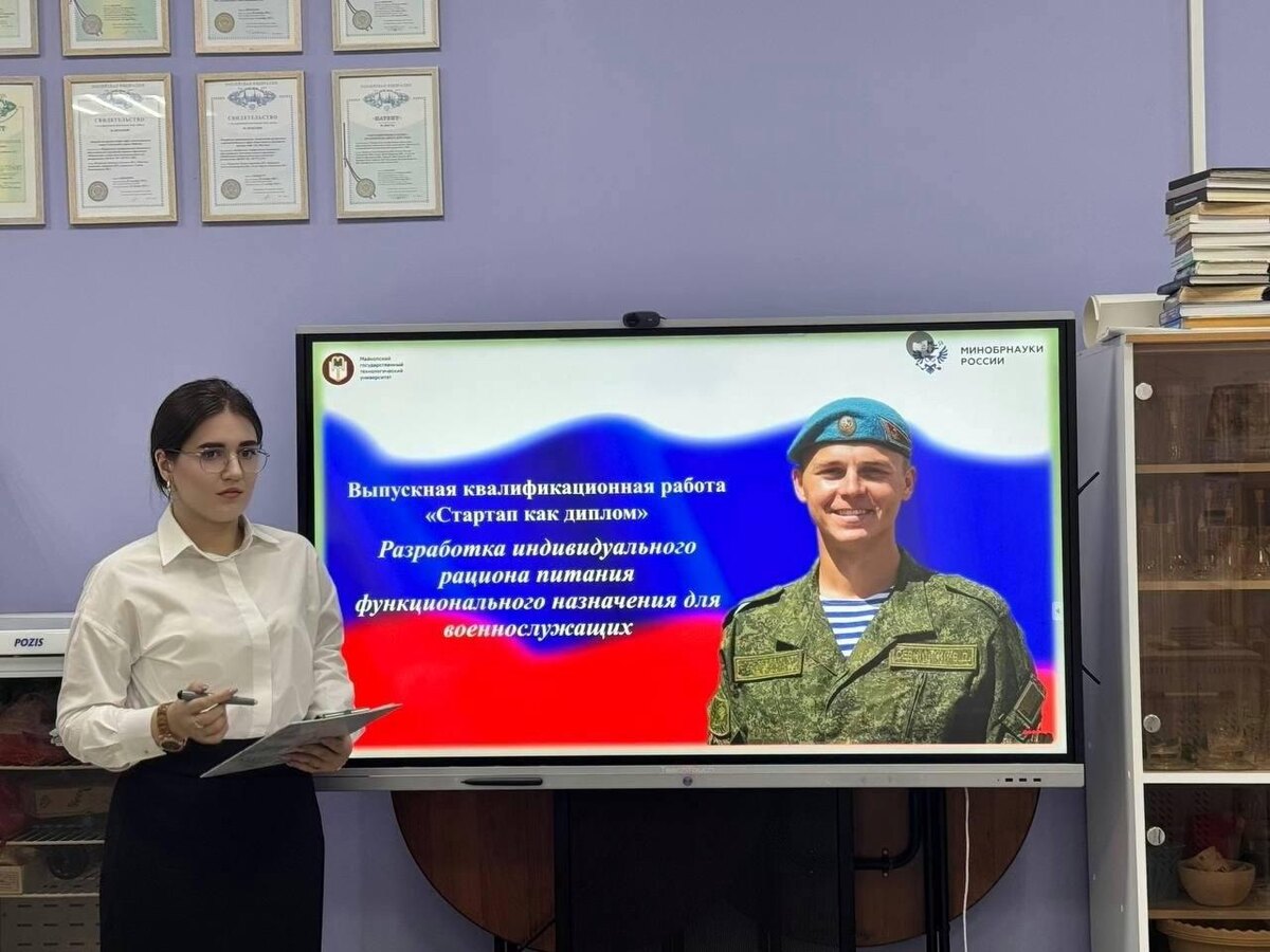 Однако звездным часом для молодой исследовательницы стала победа в конкурсе Фонда содействия инновациям «Студенческий стартап». На реализацию ее бизнес-проекта «Разработка технологии производства индивидуального рациона питания функционального назначения для военнослужащих» было выделено финансирование в размере одного миллиона рублей.