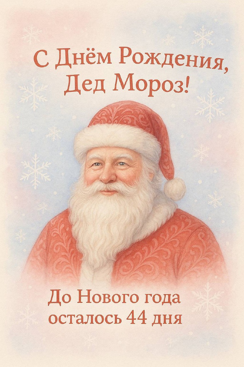 🎉 Сегодня День Рождения Деда Мороза! 🎉 Наш главный зимний волшебник принимает поздравления и уже готовится в путь — совсем скоро он заглянет в гости к каждому, чтобы подарить тепло, чудо и, конечно же, подарки! 🎅✨ Пожелаем Дедушке Морозу крепкого здоровья, сияющего настроения и нескончаемого мешка радости! ❄️ А до Нового года осталось всего 44 дня — время летит, и волшебство уже совсем рядом! ❄️ Готовьте желания и верьте в сказку! ✨ #дедмороз #деньрождениядедамороза #скоромагия #новыйгод2026 #ждемчудо #предновогоднеенастроение #волшебстворядом