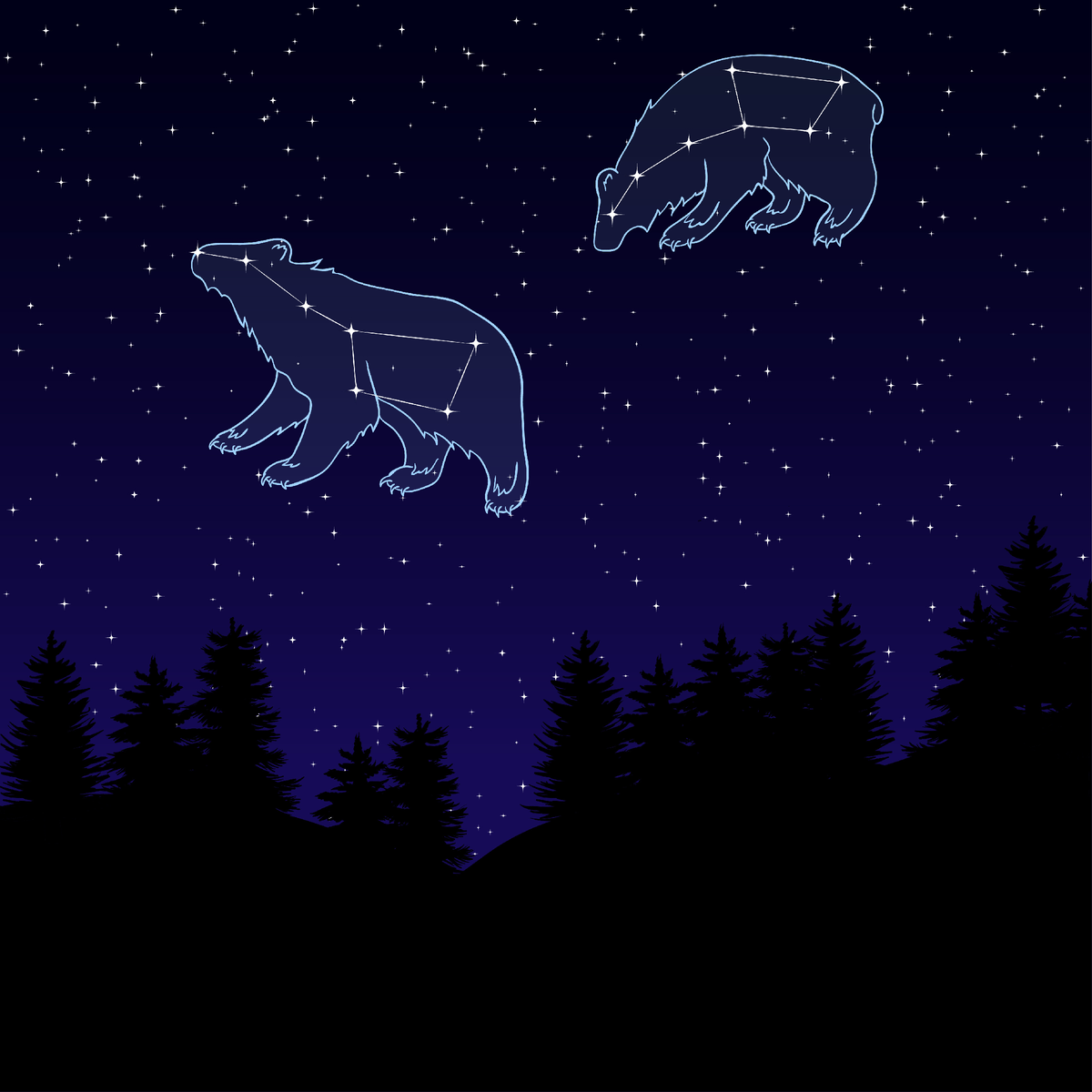 Наверное, каждый хоть раз в жизни смотрел на звёздное небо и пытался отыскать знакомые очертания созвездий. Среди самых известных — Большая и Малая Медведицы. Давайте разберёмся, что это за «звёздные звери» и почему они так важны для нас. Большая Медведица — одно из самых заметных созвездий северного полушария. Её легко узнать по характерному фигуре в виде ковша из семи ярких звёзд. Малая Медведица тоже выглядит как ковш, только поменьше. Её главная звезда — Полярная — одна из самых важных на небе. Названия созвездий пришли к нам из древнегреческой мифологии. По одной из легенд, нимфа Каллисто была превращена в медведицу, а её сын Аркад чуть не убил её на охоте. Чтобы спасти их, Зевс вознёс мать и сына на небо в виде созвездий — Большой и Малой Медведиц. Эти созвездия — отличный старт для знакомства с астрономией: Большая и Малая Медведицы — не просто красивые узоры на небе. Это древние ориентиры, которые тысячи лет помогали людям находить путь и вдохновляли на изучение космоса. В след