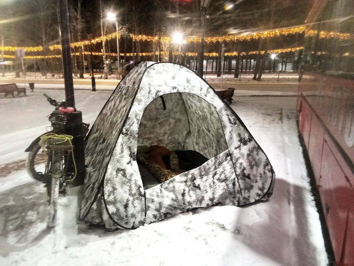 Путешественник из Бурятии устроился на ночлег в Ангарске прямо на своем велосипеде