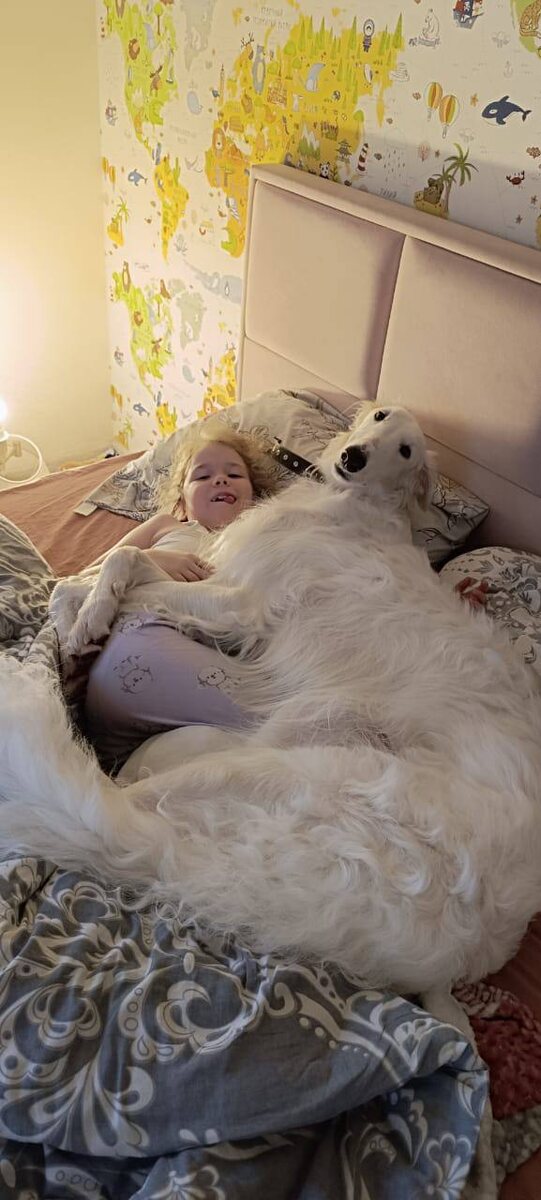 Когда владельцы обещают себе и мне , что борзая не будет спать в кровати !!! Ну как можно отказать такому красавчику и своим детям