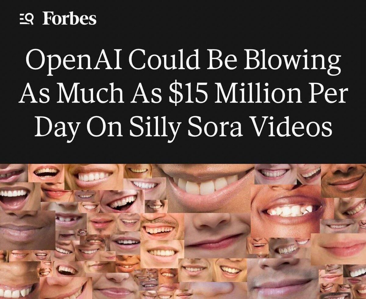 😳 Видео с мемами в Sora 2 расходуют около $15 миллионов в день — компания выделяет более четверти своего дохода на поддержку производства