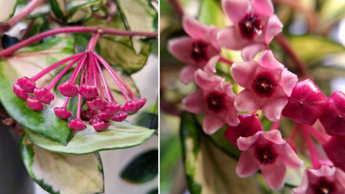 День должен начинаться красиво, согласны? Встал сегодня, и первым делом побежал смотреть, не распустила ли цветы Hoya Carnosa Tricolor. И меня ждало чудо! 🌿 Не все цветы на соцветии распустились, но это дело времени. Триколор цветет первый раз, и какие факторы поспособствовали ее цветению, честно, не знаю. 🌿 Агротехника не менялась, но могу предположить, что триггером послужила осенняя обрезка. В этом году я знатно ее обрезал. Аромат не очень яркий, и я даже не могу предположить, на что он похож. #хойя_карноза_триколор@houseplantsme ⚫️⚪️🟤 Интересно услышать ваши предположения, что может послужить фактором, который заставит растение цвести. И если у кого-то цвела такая Хойя, то на что похож аромат?