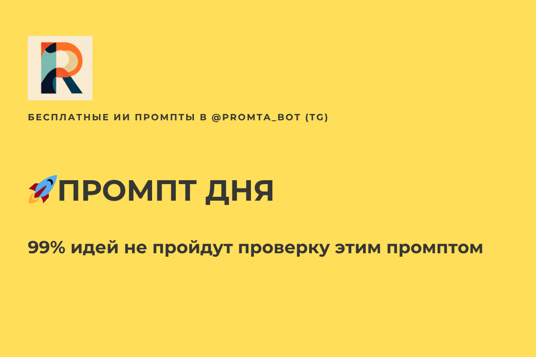 Задача: Я опишу свою бизнес-идею. Ты должен найти в ней 3 самых слабых места, которые я не вижу из-за энтузиазма ("слепые пятна").Фокус на: