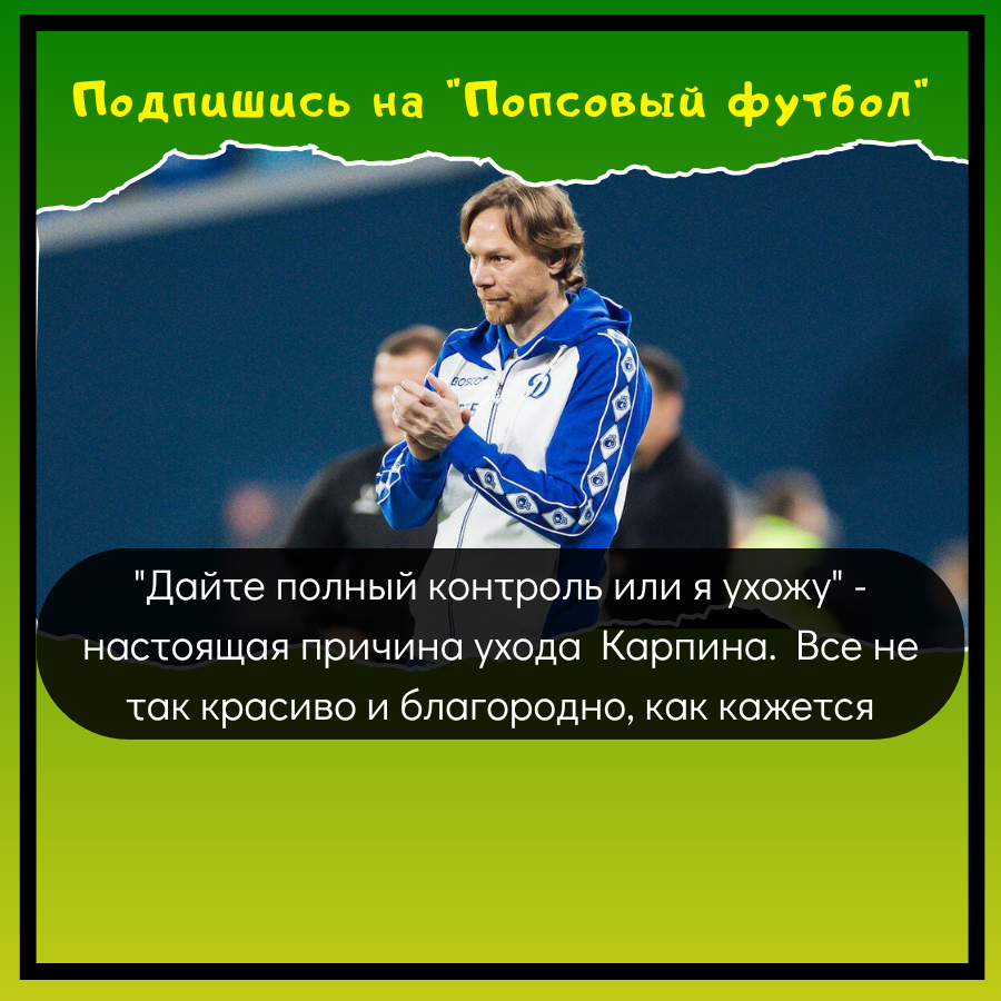 Всем здравствуйте! 10-е место. Всего 4 победы в 15 матчах. Провал? Безусловно. Но Валерий Карпин ушел из "Динамо" не поэтому. 17 ноября 2025 года, за день до официального объявления, состоялась встреча, решившая все. Карпин поставил патрону клуба Юрию Соловьеву ультиматум: "Полный контроль над спортивным блоком, комплектованием и академией. Или я ухожу". Ему отказали. И он ушел. Это не "завуалированная отставка", как пишут многие. Это - сознательный демарш тренера, который отказался быть "просто тренером" и, пожертвовав миллионной компенсацией, показал свой принцип. Разбираемся, что на самом деле произошло за 5 месяцев в "Динамо". Официальное заявление Карпина, опубликованное на сайте РФС, звучит благородно: "Принял решение... полностью сосредоточиться на национальной сборной... моим единственным приоритетом остаются результаты национальной сборной". Мы это уже слышали. И это было камнем преткновения для многих. В феврале 2025-го Карпин покидал "Ростов" с абсолютно идентичной формулиро