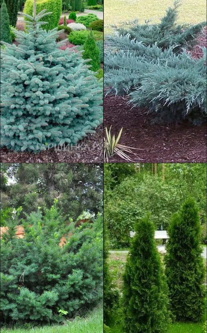 Если хотите оформить живую изгородь хвойными растениями, обратите внимание на следующие виды: Ель колючая Среднерослое дерево с пирамидальной кроной и плотно расположенными ветвями от земли. Ствол окрашен в коричнево-серый оттенок с толстой корой. Отличается густой и прочной структурой, хорошо держит форму, создавая плотную изгородь. Можжевельник виргинский Вечнозеленый кустарник или небольшое дерево с компактной кроной высотой 15-20 м. Хвоя темно-зеленая, мелкая, игловидная на ростовых побегах и чешуевидная на боковых ветвях. Отличается декоративностью и адаптивностью к разным условиям. Тис Дерево или кустарник с иголками длиной 1-3 см и резким ароматом хвои
