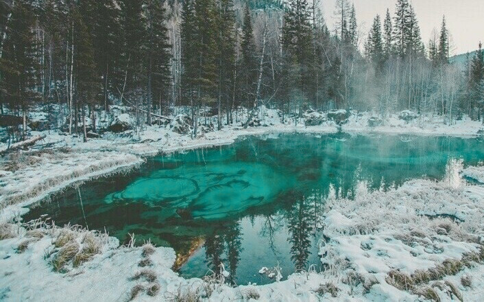 Алтай - это не просто горы, а территория, где время словно идёт иначе. Здесь встречаются такие ландшафты, что порой забываешь о современности. Кажется, будто природа оставила их нетронутыми специально, чтобы мы могли представить, как выглядела Земля задолго до нас. В этом краю всё происходит медленнее, вокруг только простор, тишина и ощущение, что попадаешь в мир, который жил по своим законам ещё до того, как появились первые поселения. Сегодня я расскажу о пяти местах Алтая, которые поразят даже тех, кто много путешествует. Это точки на карте, где реальность напоминает мифы, а природа выглядит так, будто её создавали силы другой эпохи. Гейзерное озеро в Акташе поражает бирюзовыми кругами на дне. Эти узоры - следствие выхода термальных ключей, которые поднимают на поверхность минеральные частицы. В прозрачной воде они образуют идеальные кольца, напоминающие радужку гигантского глаза. Озеро не просто статично. Несколько раз в минуту дно буквально "вздыхает", гейзеры выбрасывают смеси го