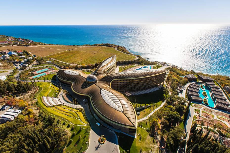 Это единственный пятизвездочный курорт на Южном берегу Крыма с мировым уровнем обслуживания. Комплекс расположен в Оползневом, между Ялтой и Симеизом, на площади 16 гектаров. Здесь работает спа-центр площадью 10 000 м² с 50+ видами процедур, включая аюрведические практики и талассотерапию. Я тестировал абхъянга-массаж спины — за 90 минут специалисты действительно прорабатывают каждую зону по всем канонам. Номерной фонд представлен категориями от стандарта до президентских апартаментов с панорамным видом на море.