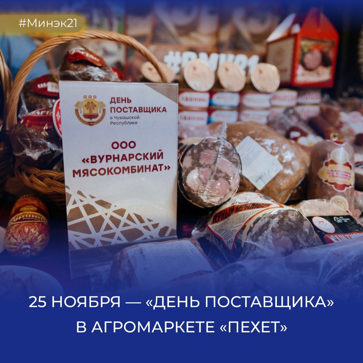 🎉 Приглашаем на выставку-продажу продукции и дегустацию от местных производителей! 📆 25 ноября в агромаркете «Пехет» состоится яркое событие для всех, кто ценит свежие и качественные местные товары — «День поставщика». Более 40 предприятий со всей республики представят продукты питания и товары народного потребления. Гостей ждёт большая выставка-продажа и насыщенная дегустационная программа. ⏰ Время работы — с 10:00 до 15:00. Приходите познакомиться с местными товарами и открыть для себя новых производителей! #Минэк21 #МинэкЧувашии