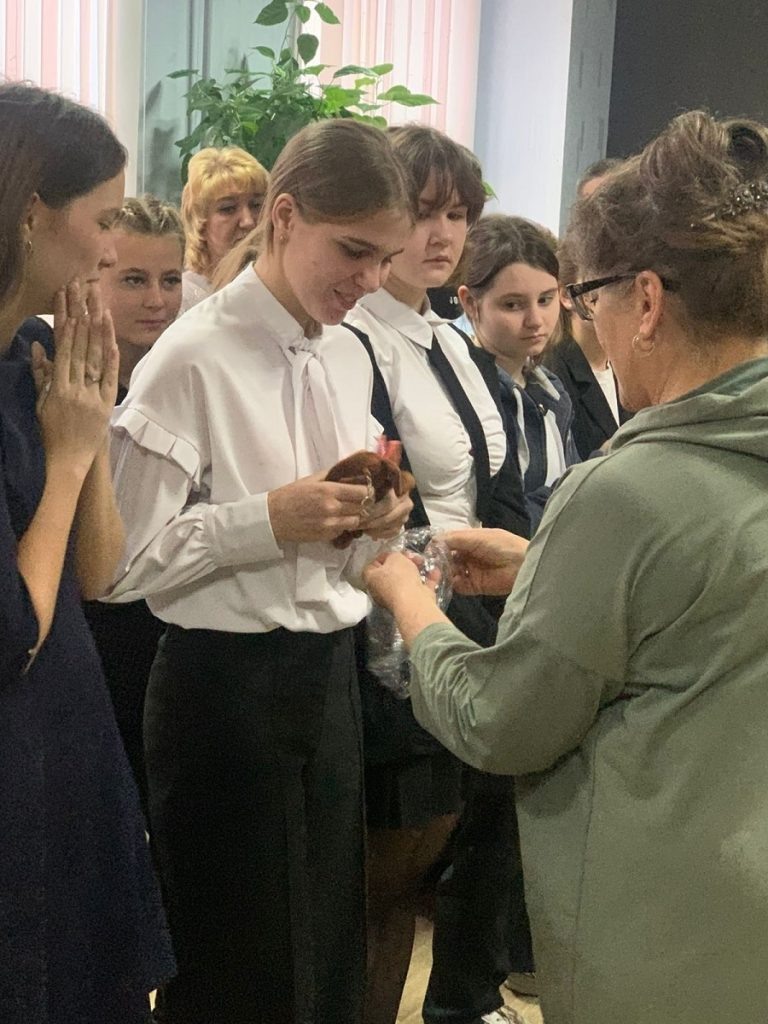 София Тереняк активно участвует в поддержке наших военнослужащих. Она написала более 100 теплых, вдохновляющих писем, адресованных бойцам, находящимся на излечении. Каждое письмо сопровождалось сделанным вручную крестиком из бисера, символизирующим тепло домашнего очага и светлую веру в выздоровление. В знак признательности и благодарности бойцы решили выразить свое уважение особым подарком. Они передали Софии два символичных предмета: шеврон, олицетворяющий верность долгу и боевым традициям, и мягкую игрушку – Чебурашку, ставшую символом доброты и поддержки.