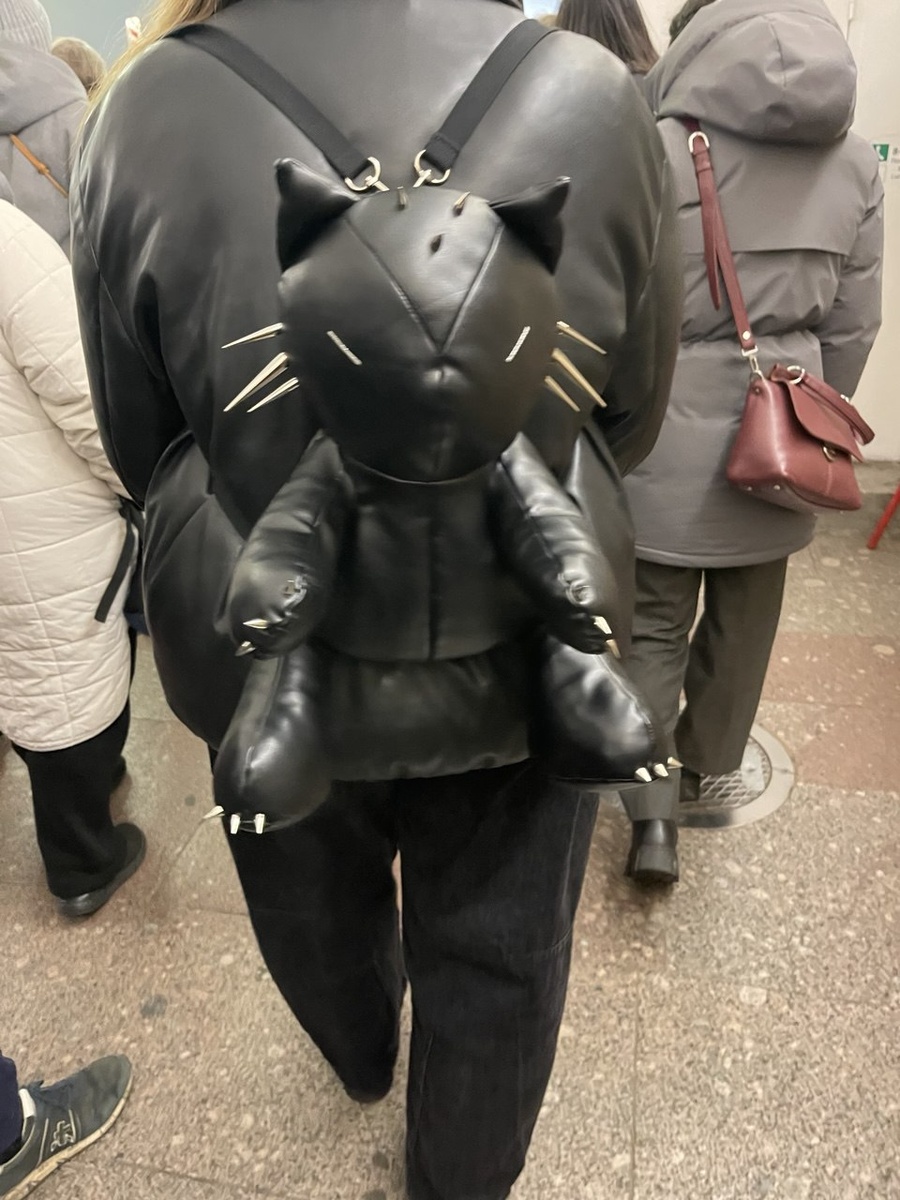 Вот такой вот дивный рюкзачок мне вчера встретился. Хотела пожать ему лапку, но не смогла, острые когти мешают… Как, впрочем, и приблизится… 🤪