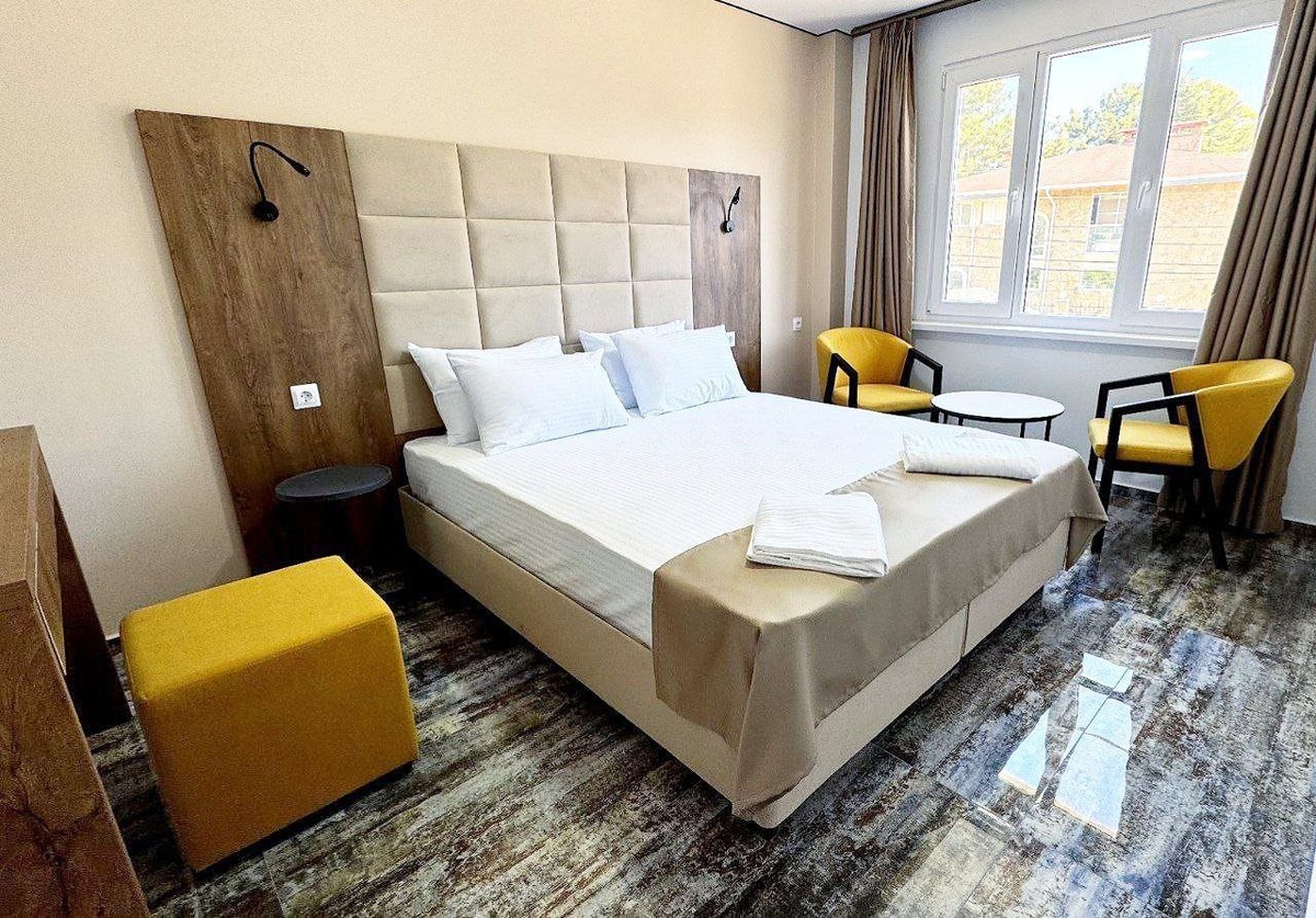 НОВЫЙ ОТЕЛЬ "ЛАЗУРИТ" РАННЕЕ БРОНИРОВАНИЕ 📍Лдзаа, ул. Рыбзаводская, д. 47 🏖 3 минуты, пляж песчано-галечный 👥 Размещение до 5 человек ✔️ТЕРРИТОРИЯ: Идеальное место для тех, кто ищет комфорт и качество. Расположен в живописной прибрежной зоне на первой линии. Зона отдыха на крытой веранде с красивым видом, где вы самостоятельно можете воспользоваться мангалом. Кафе в закрытом прохладном помещении. Есть детские стульчики. Завтраки комплексные (с 8 до 9:30 утра) уже включены в стоимость для всех. В остальное время кухня работает по меню: ресторан с местной и международной кухней. Парковка для гостей. ✔️ НОМЕРА: Современные и уютные номера. Все комнаты с кондиционером, телевизором, холодильником, чайником и Wi-Fi. Качественный текстиль, стильные детали, всё новое. Стандарт однокомнатный на 2 человека (15м²) двуспальная кровать. Обзор номера тут Стандарт однокомнатный на 3 человека (18м²) двуспальная кровать. Обзор номера тут Полулюкс двухкомнатный на 4 человека (28м²) двуспальная к