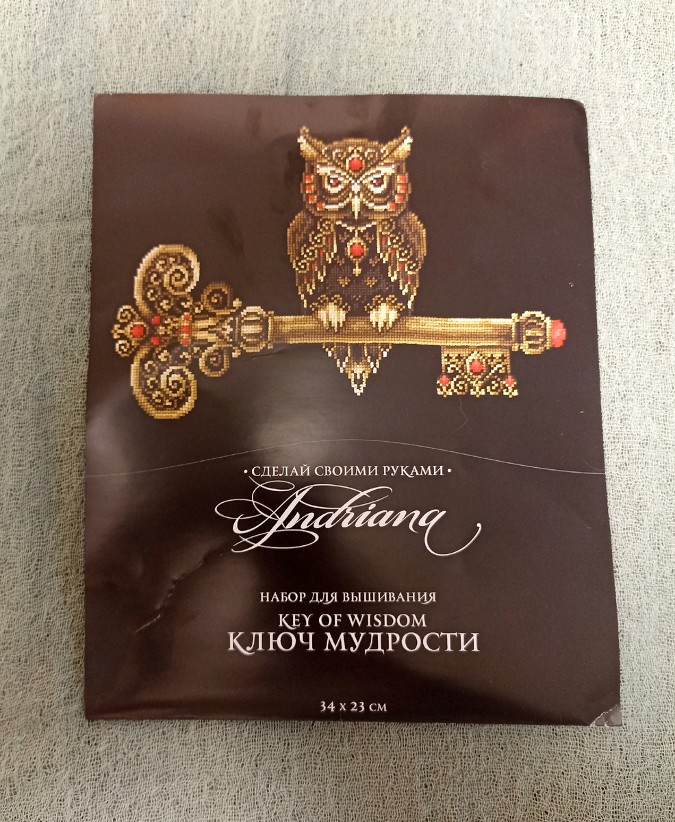 Третий старт получился спонтанным. Потому что мне срочно приспичило вышить ключ. Ну, или домик. На примету;) У нас все никак не решится квартирный вопрос. У меня есть в запасах домик от Andriana, но я поняла, что этот сюжет совсем про другую историю. Так что решила все таки искать ключ. Пересмотрела кучу наборов и авторских схем, но в итоге заказала набор, на который сразу упал взгляд - Ключ мудрости от Andriana. И да, снова тёмная основа.