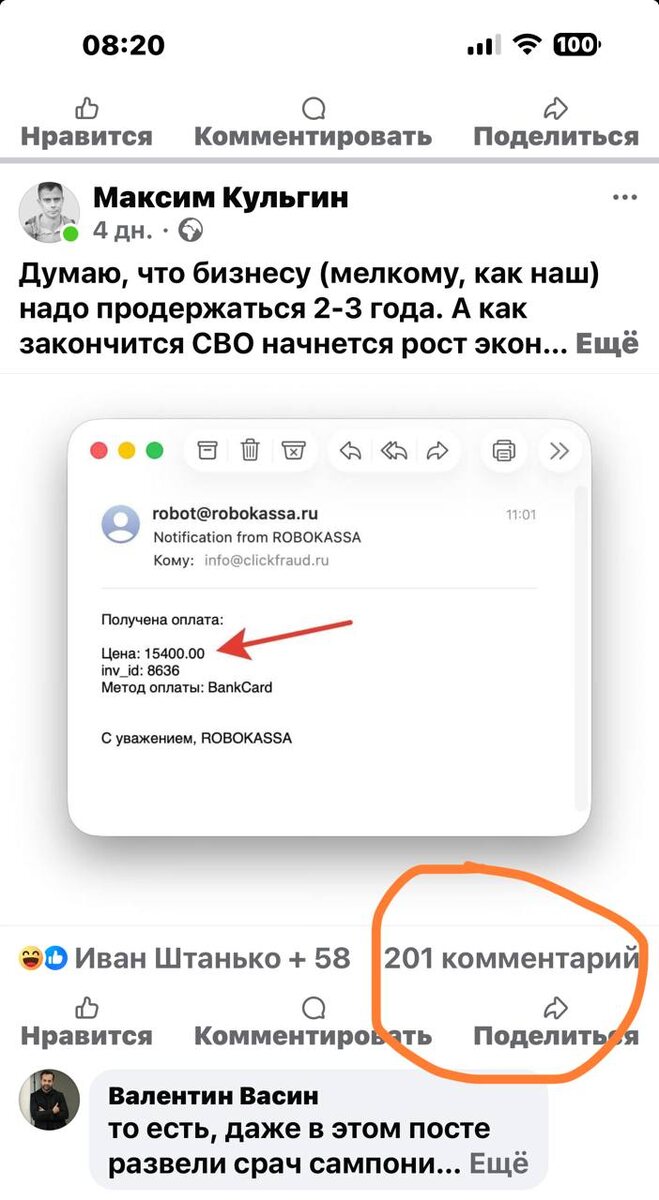 Во чего происходит, иду на рекорд в запрещенной сети ФБ. Абсолютно нейтральный пост про то, что после СВО экономика будет расти в РФ, вызвал такую бурю обсуждений, диву даюсь. А там, замечу, есть ссылочка на clickfraud.ru, бугага ... :) Уважаемые нищие стартаперы, вы это, не стесняйтесь весь соц.сети и рассказывать свой опыт as is. Не, если у вас много денег (венчурных), можете давать рекламу в Я.Директ, но это, замечу, нынче не дешево... Дешевле такой партизанский маркетинг :) Русский ИТ бизнес