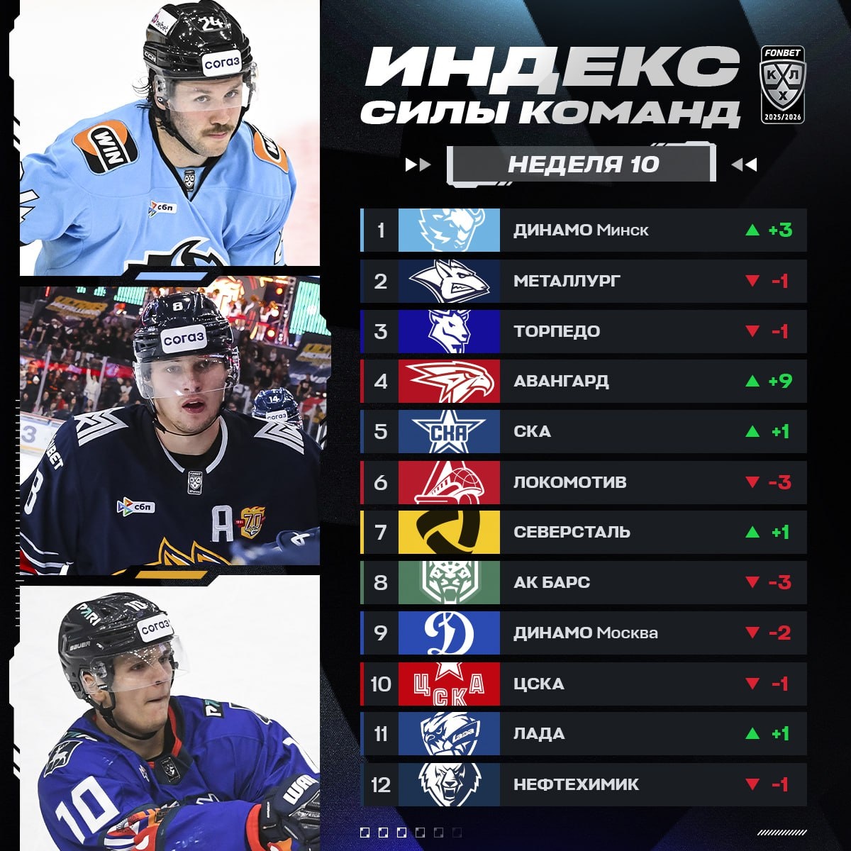 Минское "Динамо" впервые возглавило Индекс силы команд, сообщили в пресс-службе КХЛ Индекс силы – это рейтинг, подсчитывающийся математически на основе показателей в текущем сезоне. Индекс силы показывает, какие команды в настоящий момент находятся "на ходу", обыгрывают фаворитов и выдают длительные победные серии (за победу в основное время одна команда отнимает у другой 25% ее баллов, в случае победы в овертайме или по буллитам — 12.5%). Минчане сейчас находятся на третьем месте в Западной конференции с 37 очками после 26 игр. В этом сезоне "зубры" проиграли 9 поединков. Сегодня "динамовцы" на выезде сразятся с "Северсталью". 🔴Читайте Sputnik Беларусь в MAX