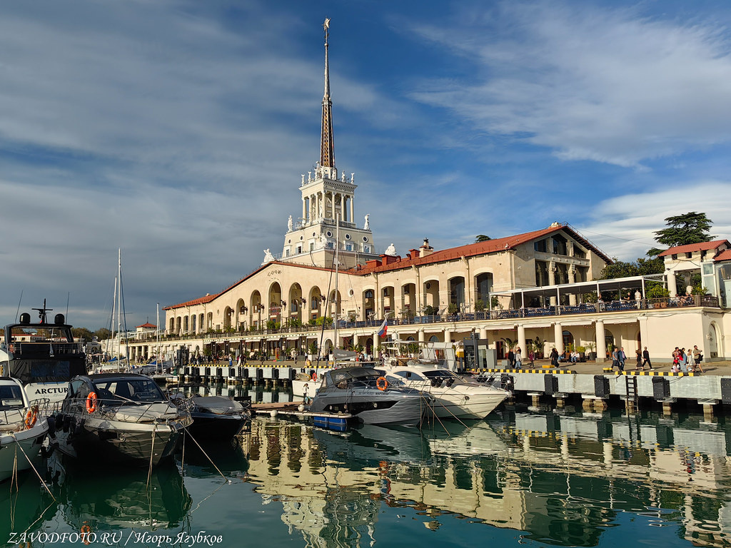 Сочинский морской вокзал находится прямо в центре города и ежегодно привлекает тысячи туристов, увлеченных архитектурой и морем. Здание вокзала, построенное в 1955 году, сегодня является одним из самых узнаваемых символов Сочи. Особенно выделяется на общем фоне 71-метровая башня со шпилем, а также скульптуры девушек, установленные на ней, и олицетворяющие четыре стороны света.