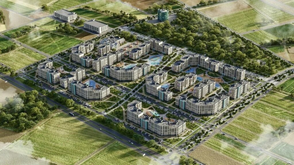 Проект рассчитан на 19 лет, а его масштабы впечатляют: общая территория застройки составляет 186 гектаров, на которых разместятся 89 жилых корпусов. Общая площадь нового жилья составляет более 830 000 квадратных метров, что делает проект одним из крупнейших в регионе. Но главная его особенность — это комплексный подход, где синхронно с жильем возводится вся необходимая инфраструктура: три детских сада на 1 050 мест, две школы на 2 770 учеников, поликлиника, спортивный комплекс с бассейном площадью 1 425 кв. метров, зал единоборств, торговая галерея, которая займет 87 000 кв. метров, собственный всесезонный аквапарк, парковая зона на 6,7 га с озером и амфитеатром и даже храм.