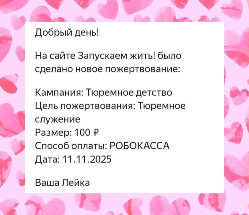 🫶День любви 💕Каждый день, один и тот же человек, шлёт на счёт нашей организации - сто рублей. Вот уже не первый год. 💕 Сто рублей, для наших добрых дел поездок к нуждающимся семьям, дом ребёнка женской колонии, где вместе с мамами, сидят и их дети, которые не виноваты в том, что их мамы совершили недоброе... 💕Сто рублей, для поездок в регионы и женские колонии. Спасибо этому человеку. Мы многое можем вместе. 🤝 Для нас сто рублей от каждого друга, хорошее подспорье в добром деле. ✨Все её зря!!! Директор Центра, АС Гезалов
