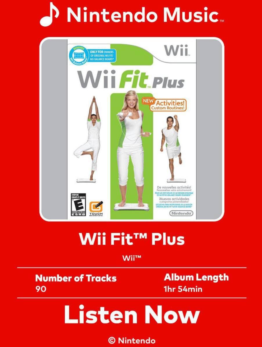 В приложении Nintendo Music появился полный саундтрек из Wii Fit Plus. Он включает в себя 90 композиций за авторством Асуки Ота длительностью почти 2 часа.