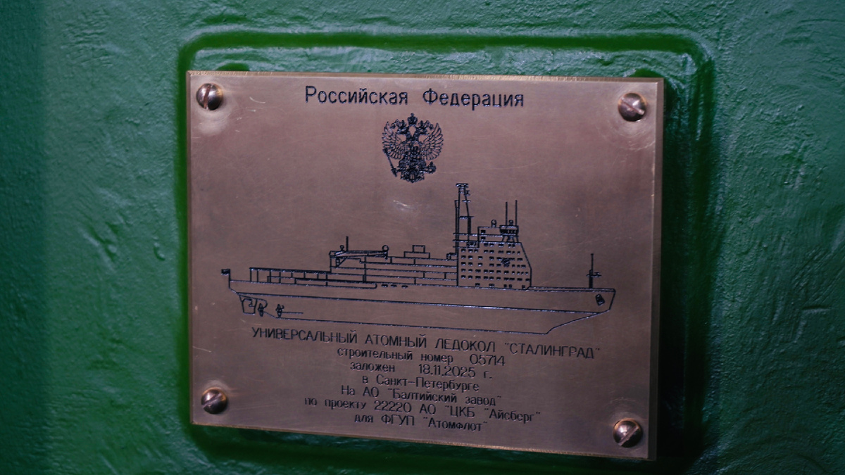 Президент Российской Федерации Владимир Путин в режиме видеоконференцсвязи принял участие в торжественной церемонии закладки седьмого универсального атомного ледокола проекта 22220 «Сталинград» на Балтийском заводе Объединенной судостроительной корпорации в Санкт-Петербурге. Новый ледокол станет очередным шагом в укреплении лидирующих позиций России в Арктике и развитии Северного морского пути. Новый универсальный атомный ледокол назван в честь победы советских войск в Сталинградской битве, ознаменовавшей коренной перелом в ходе Великой Отечественной войны. Дата торжественной церемонии закладки символически приурочена к началу контрнаступления советских вооруженных сил под Сталинградом 19 ноября 1942 года. «Сегодня Россия активно и последовательно развивает свой ледокольный флот, пополняет его современной техникой. В этом, несомненно, огромная заслуга наших замечательных корабелов, ученых-атомщиков, инженеров, конструкторов, рабочих и специалистов разных профессий. Спасибо за ваш огро
